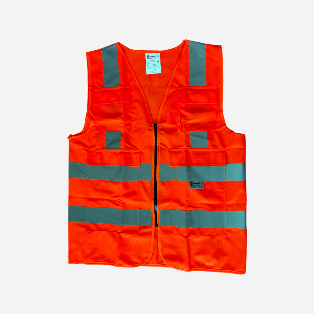 Spartan Guard Safety Vests are designed with high-visibility fabric and reflective strips to enhance worker safety in both day and night operations. Available in multiple designs including multipocket, zippered, Velcro, fabric/mesh, and polyester variants. Perfect for road work, construction, and industrial use. Offered in Orange for visibility and role differentiation.